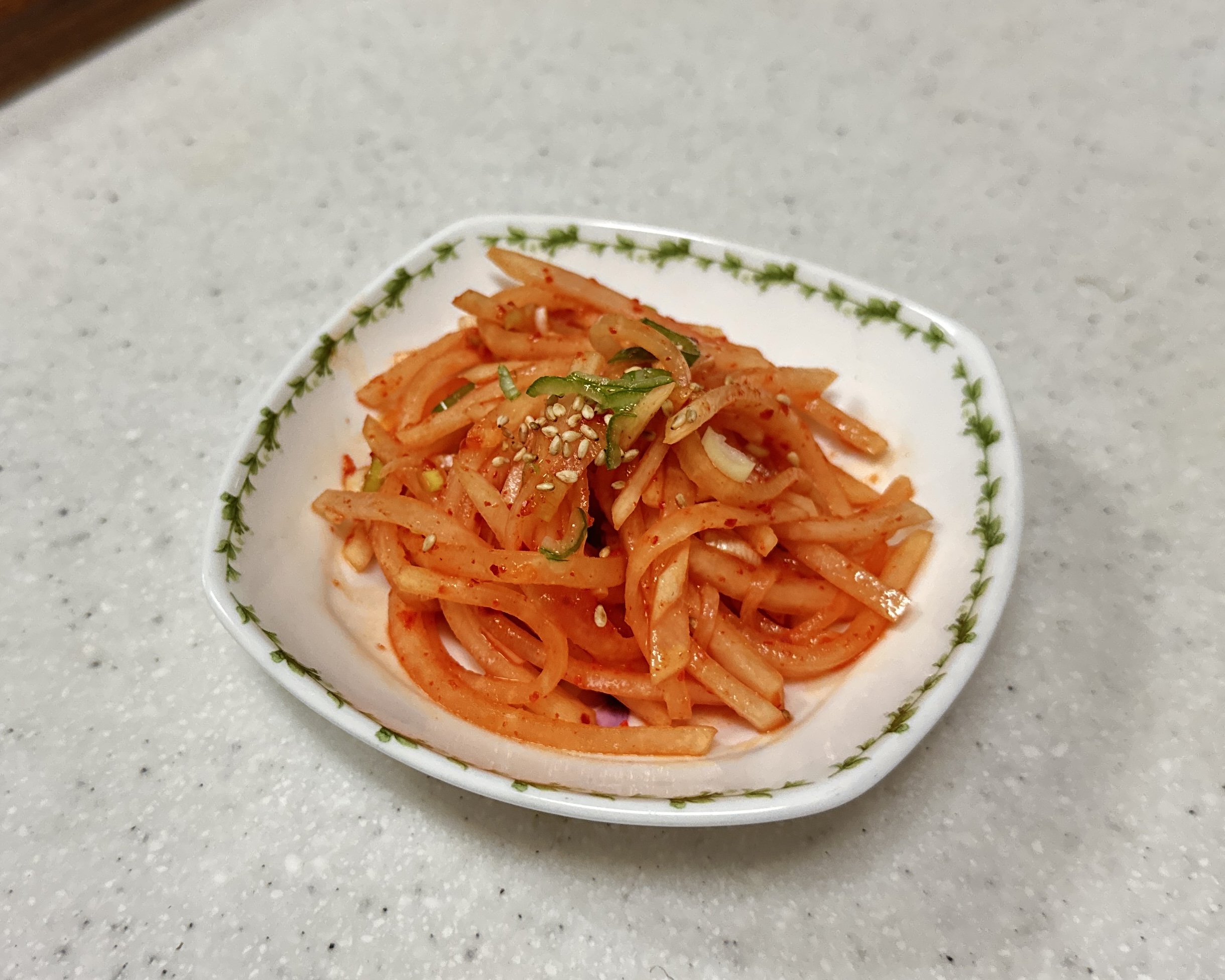 채를 썬 무 위에